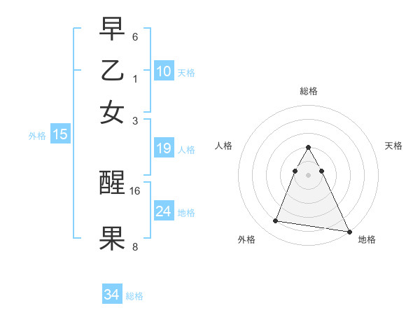 早乙女 醒果さんの総格は34画の2点!