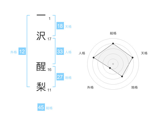 一沢 醒梨さんの総格は45画の4点!