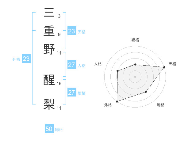 三重野 醒梨さんを姓名の画数から五運を鑑定