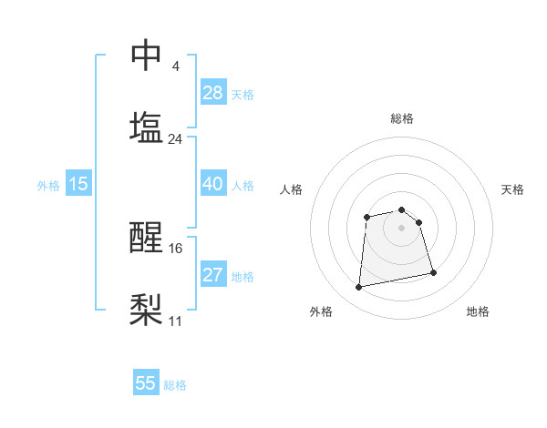 中塩 醒梨さんを姓名の画数から五運を鑑定