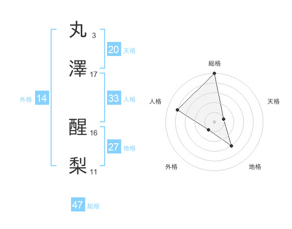 丸澤 醒梨さんを姓名の画数から五運を鑑定