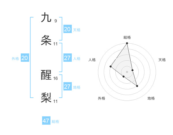 九条 醒梨さんを姓名の画数から五運を鑑定