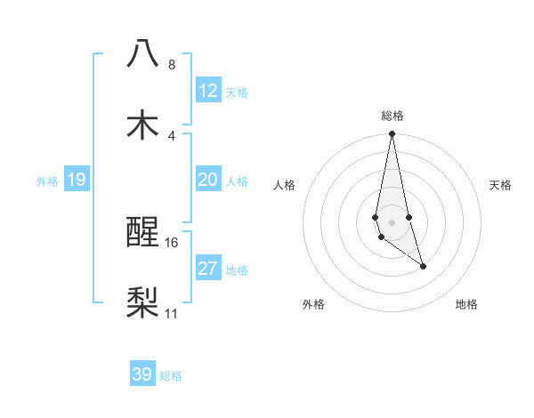 八木 醒梨さんを姓名の画数から五運を鑑定