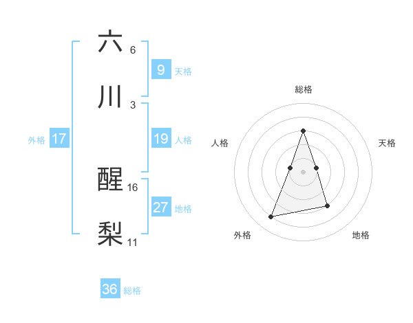 六川 醒梨さんを姓名の画数から五運を鑑定
