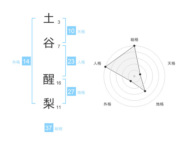土谷 醒梨さんの総格は37画の5点