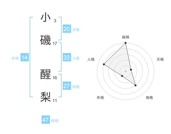小磯 醒梨さんを姓名の画数から五運を鑑定