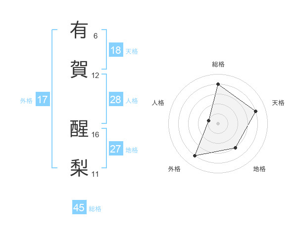 有賀 醒梨さんを姓名の画数から五運を鑑定