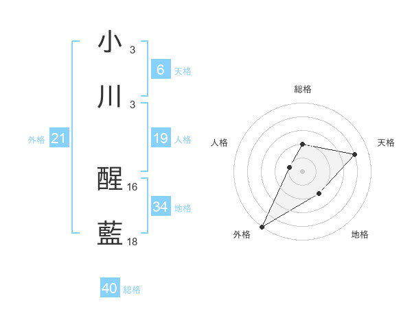 小川 醒藍さんの外格は21画の5点!