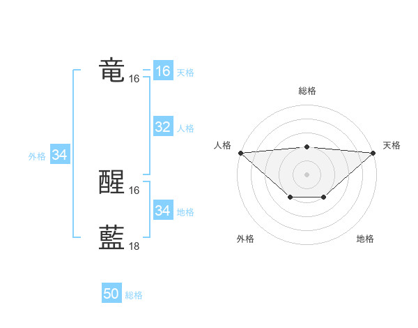 竜 醒藍さんの天格は16画の5点!