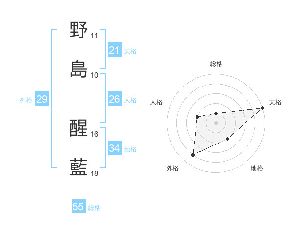 野島 醒藍さんを姓名の画数から五運を鑑定
