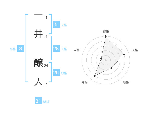 一井 醸人さんの総格は31画の5点!