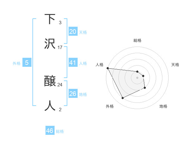 下沢 醸人さんの総格は46画の1点!