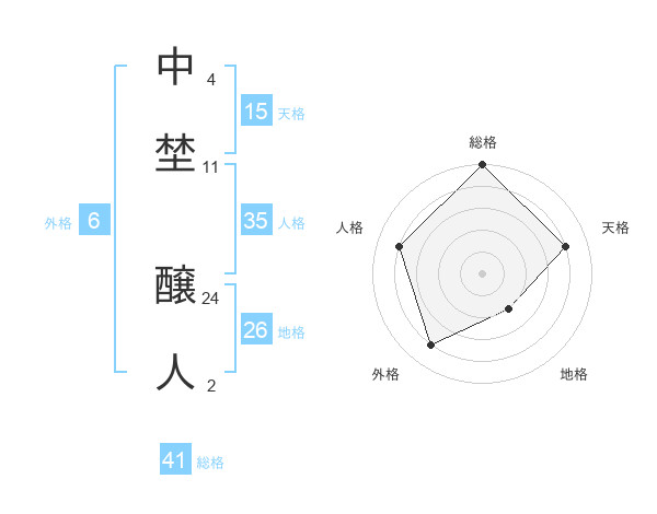 中埜 醸人さんの総格は41画の5点!