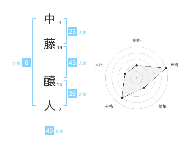 中藤 醸人さんを姓名の画数から五運を鑑定