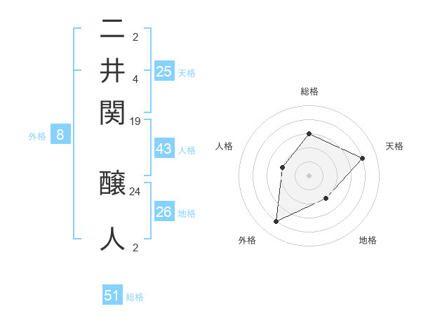 二井関 醸人さんの総格は51画の3点!