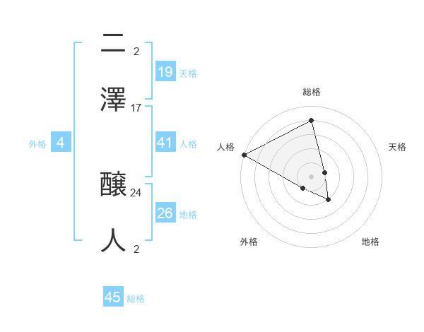 二澤 醸人さんの総格は45画の4点!