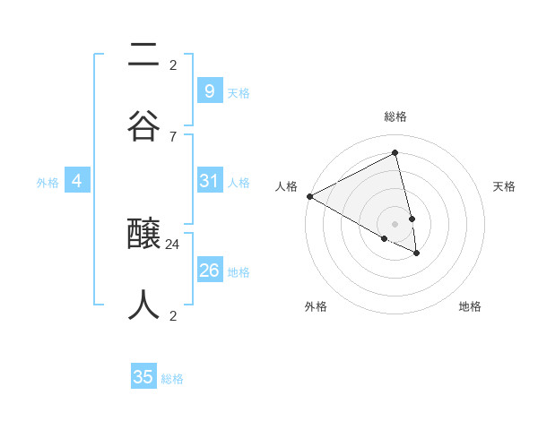二谷 醸人さんを姓名の画数から五運を鑑定