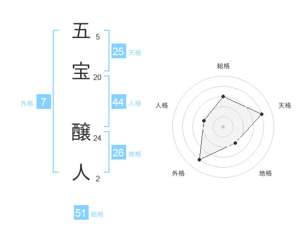 五宝 醸人さんを姓名の画数から五運を鑑定
