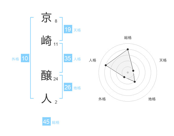 京崎 醸人さんの総格は45画の4点!