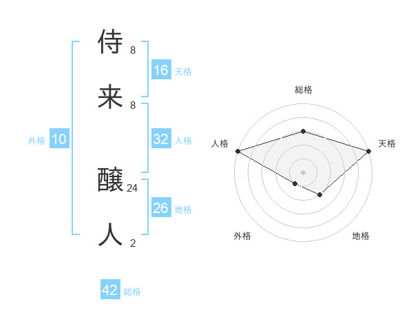 侍来 醸人さんの天格は16画の5点!