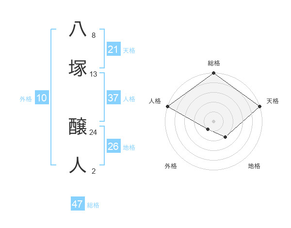 八塚 醸人さんを姓名の画数から五運を鑑定
