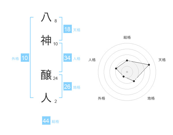 八神 醸人さんの総格は44画の2点!