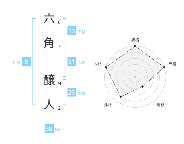 六角 醸人さんの総格は39画の5点!