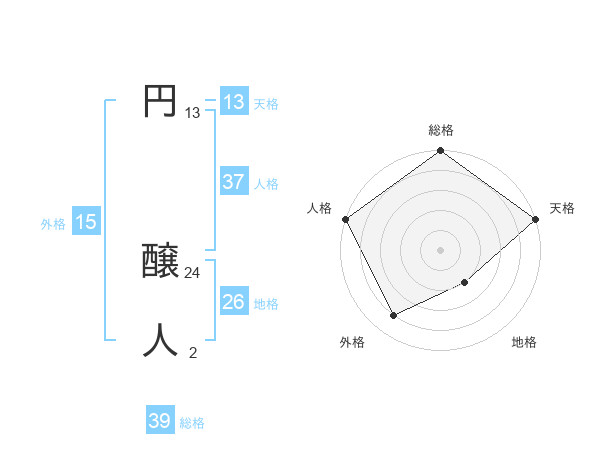 円 醸人さんの総格は39画の5点!