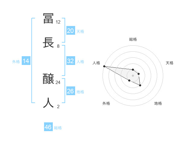 冨長 醸人さんを姓名の画数から五運を鑑定