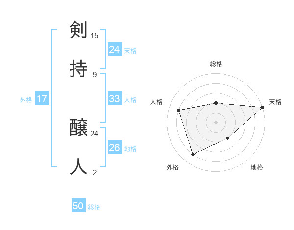 剣持 醸人さんを姓名の画数から五運を鑑定