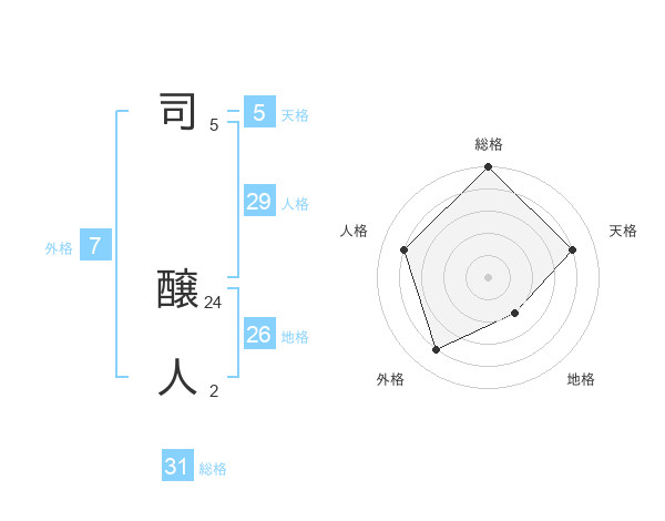 司 醸人さんの総格は31画の5点!