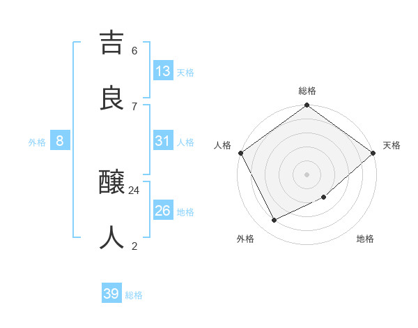 吉良 醸人さんの総格は39画の5点!