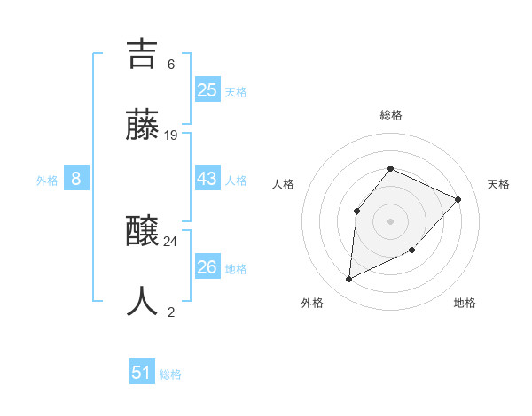 吉藤 醸人さんの総格は51画の3点!