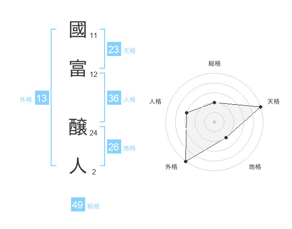 國富 醸人さんの天格は23画の5点!