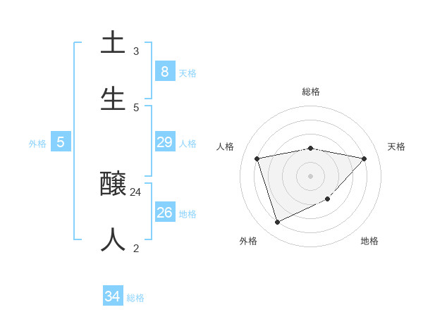 土生 醸人さんを姓名の画数から五運を鑑定