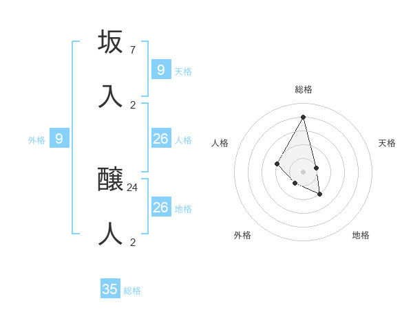 坂入 醸人さんの地格は26画の2点!