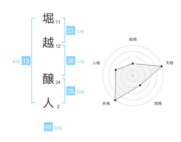 堀越 醸人さんの外格は13画の5点!