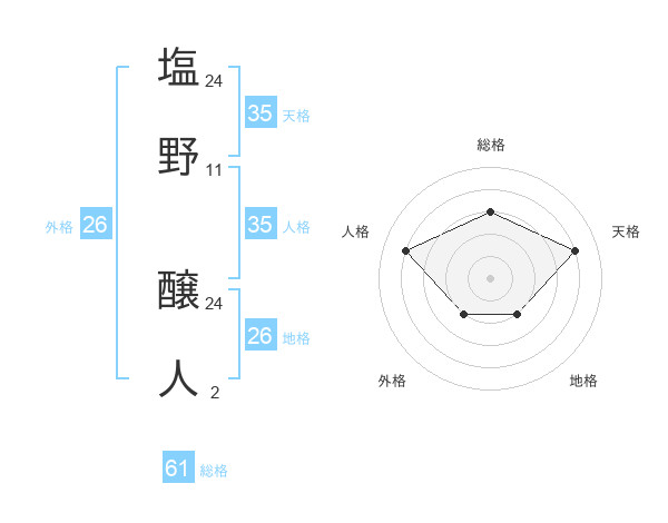 塩野 醸人さんの総格は61画の3点!