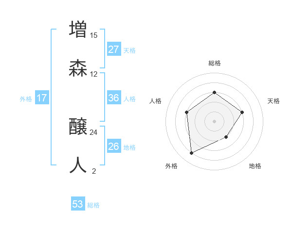 増森 醸人さんの総格は53画の3点!