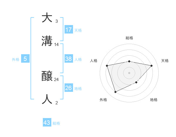 大溝 醸人さんの天格は17画の4点!