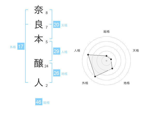 奈良本 醸人さんを姓名の画数から五運を鑑定