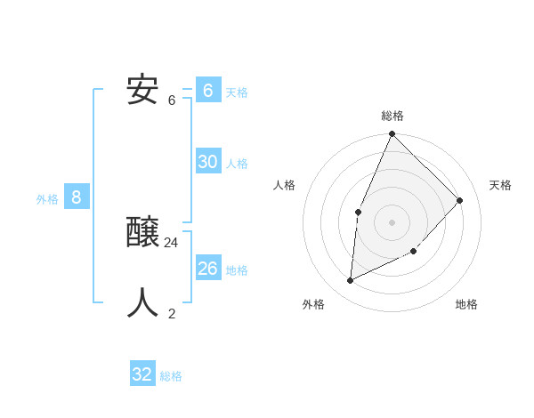 安 醸人さんの地格は26画の2点!