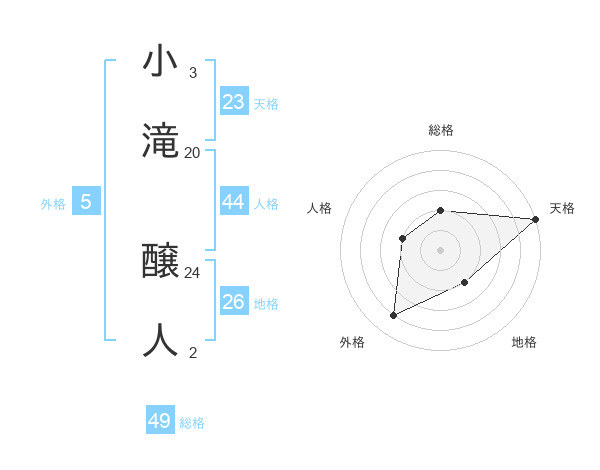 小滝 醸人さんを姓名の画数から五運を鑑定