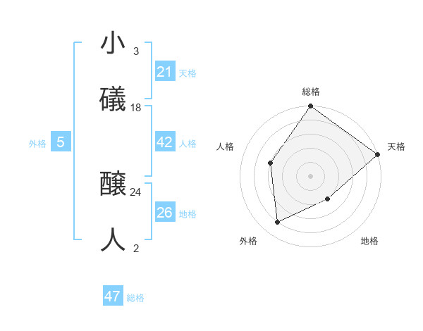小礒 醸人さんの天格は21画の5点!