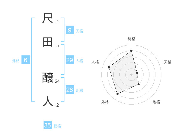 尺田 醸人さんを姓名の画数から五運を鑑定