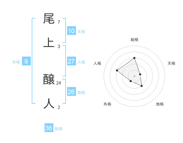 尾上 醸人さんを姓名の画数から五運を鑑定