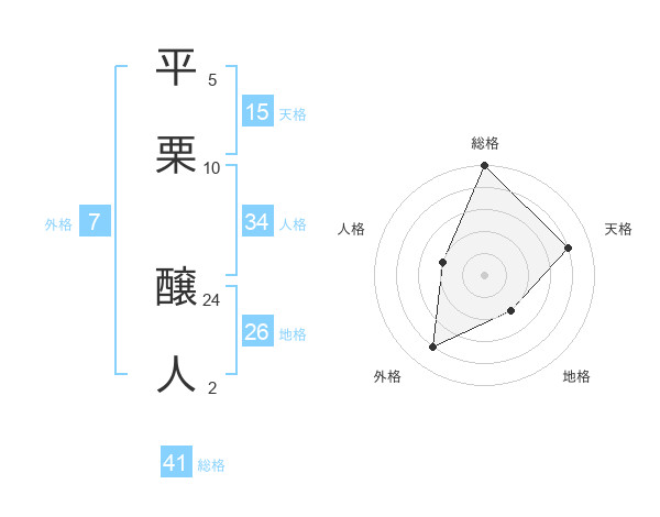 平栗 醸人さんを姓名の画数から五運を鑑定