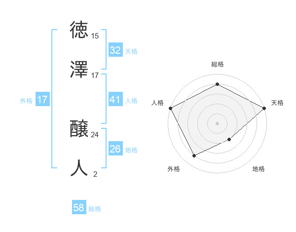 徳澤 醸人さんの総格は58画の4点!