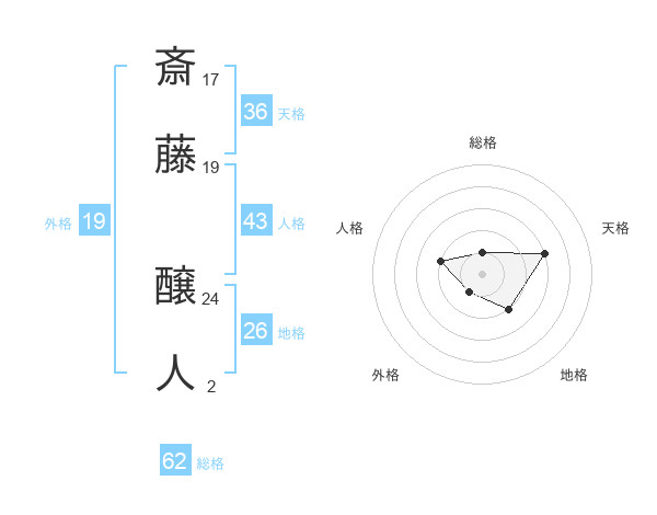 斎藤 醸人さんを姓名の画数から五運を鑑定