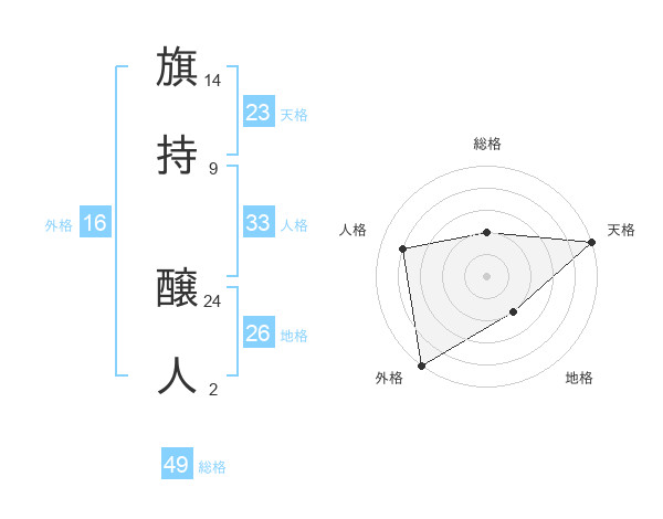 旗持 醸人さんの天格は23画の5点!